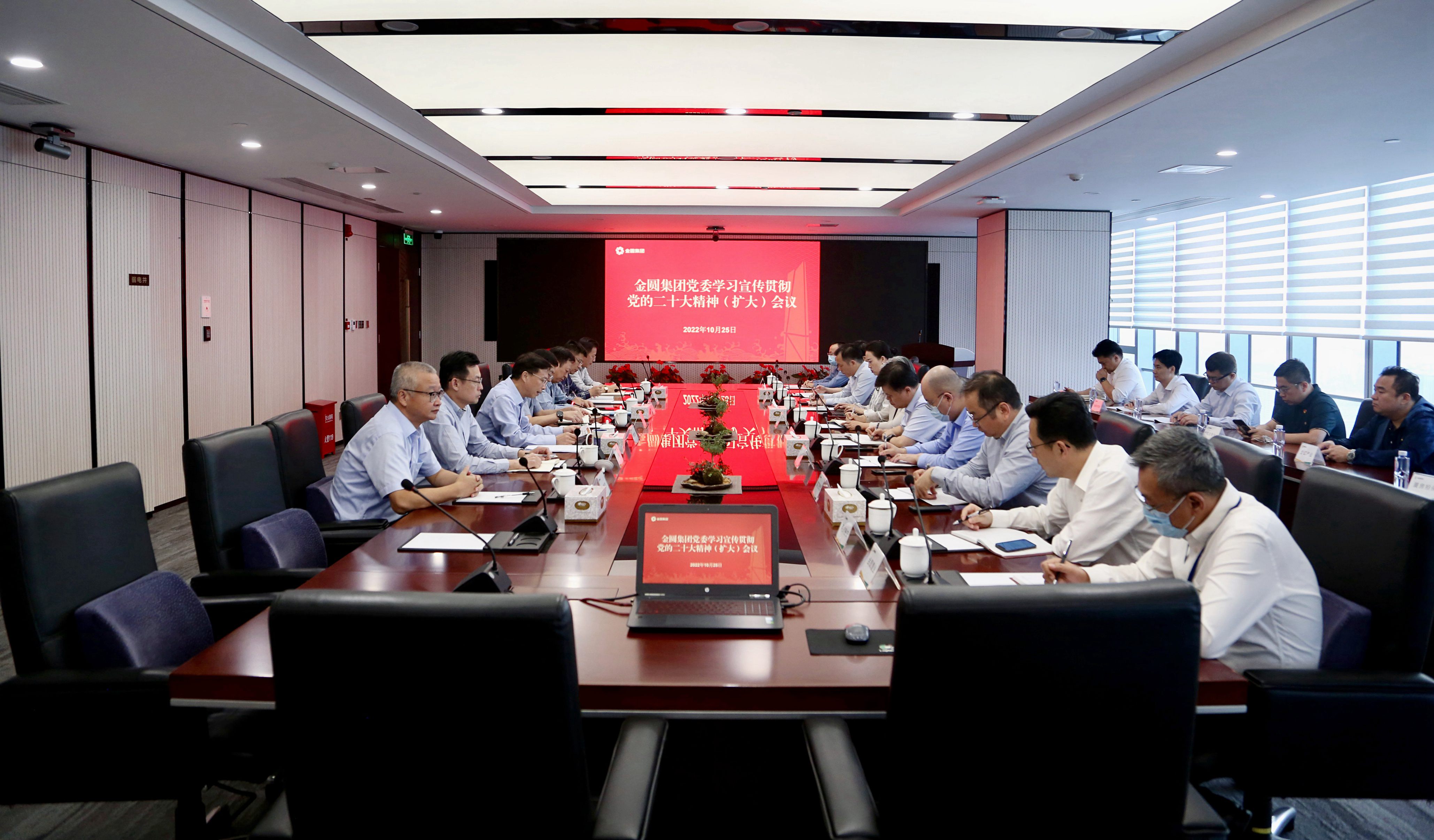 10月25日下午,beats365唯一官网入口官网党委召开扩大会议,传达学习党的二十大和党的十九届七中全会、二十届一中全会精神,以及省委常委会(扩大)会议、市委常委会(扩大)会议精神,研究部署集团初步贯彻落实意见。集团党委书记、董事长檀庄龙主持会议。集团领导班子成员、下属党组织负责人和集团职能部门、子公司主要负责人参加会议。